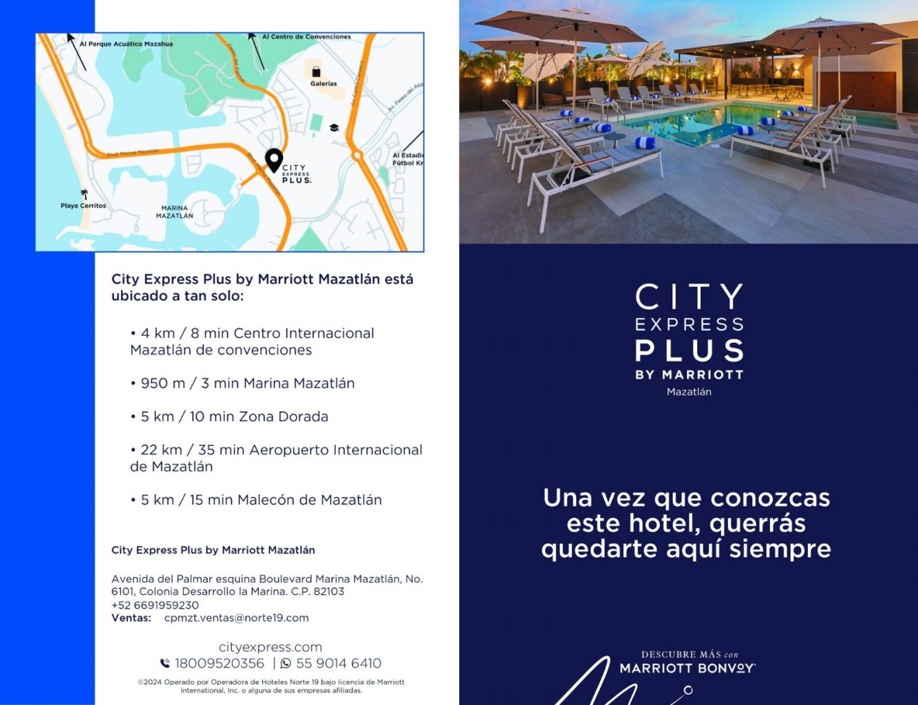 Ubicado en el exclusivo Desarrollo Marina Mazatlán, City Express Plus by Marriott Mazatlán ofrece habitaciones modernas, ambiente libre de humo, desayuno incluido, gimnasio, centro de negocios y una excelente ubicación cerca de centros comerciales, restaurantes y puntos turísticos clave. Ideal para quienes viajan por negocios o placer y buscan una experiencia práctica y confortable.