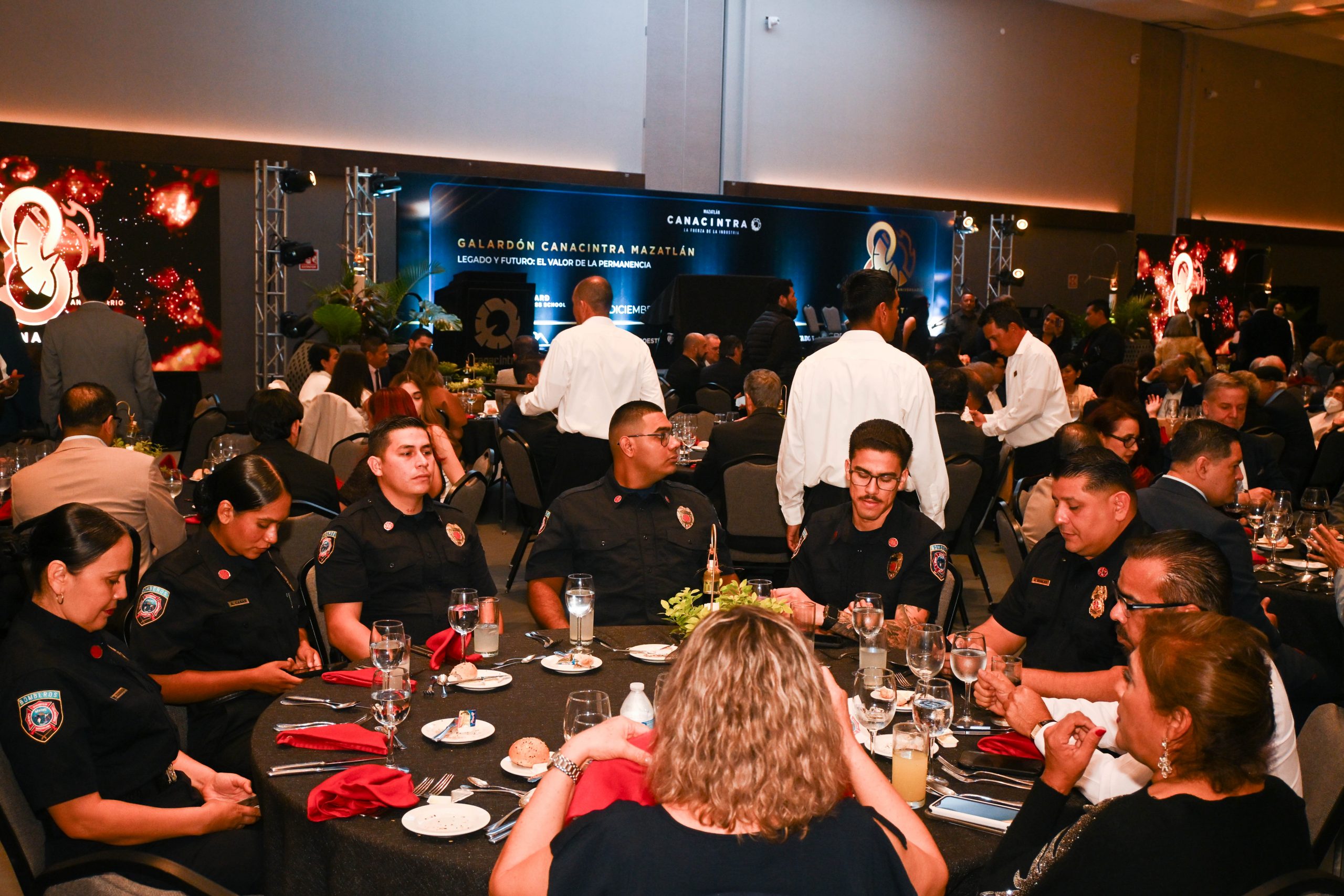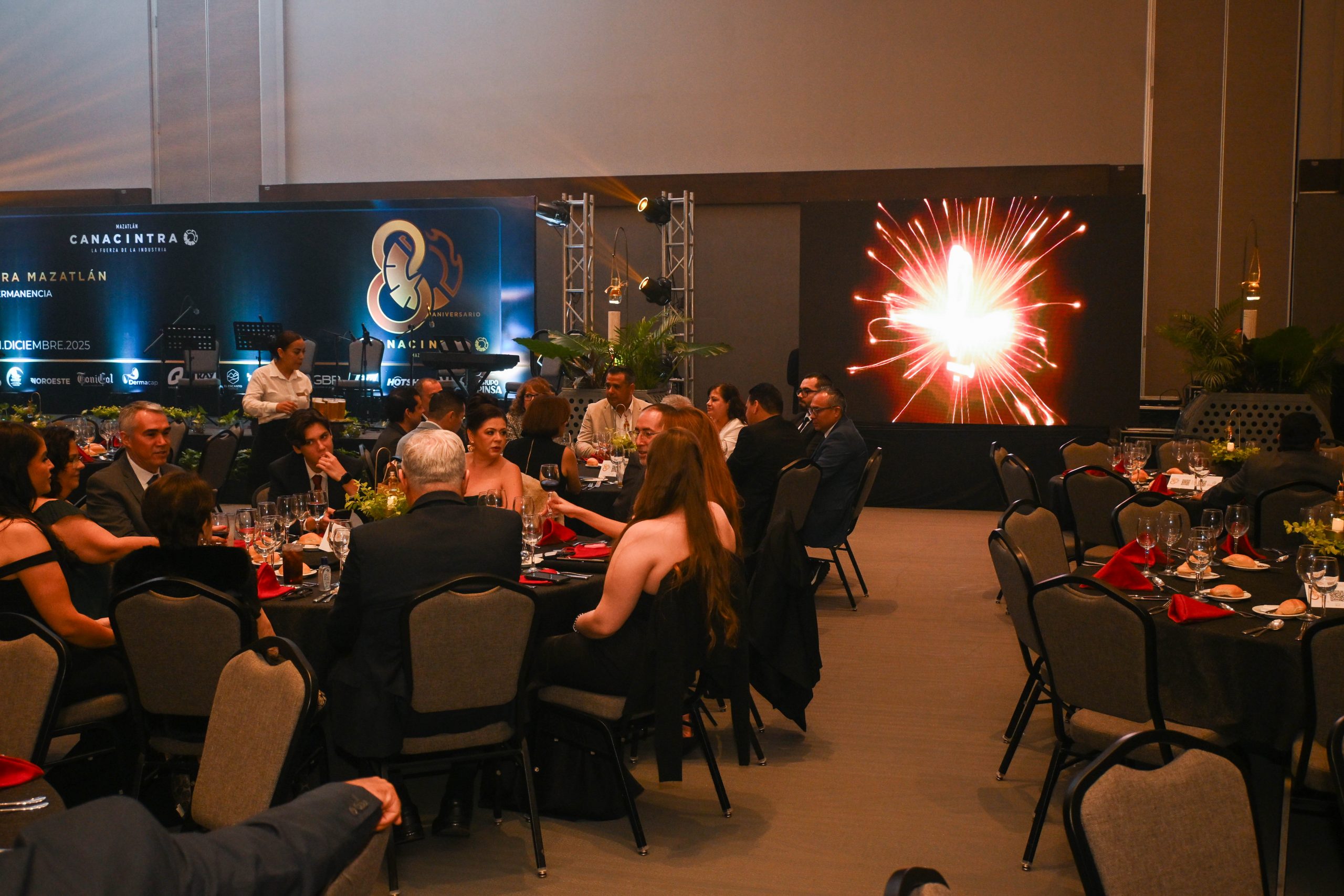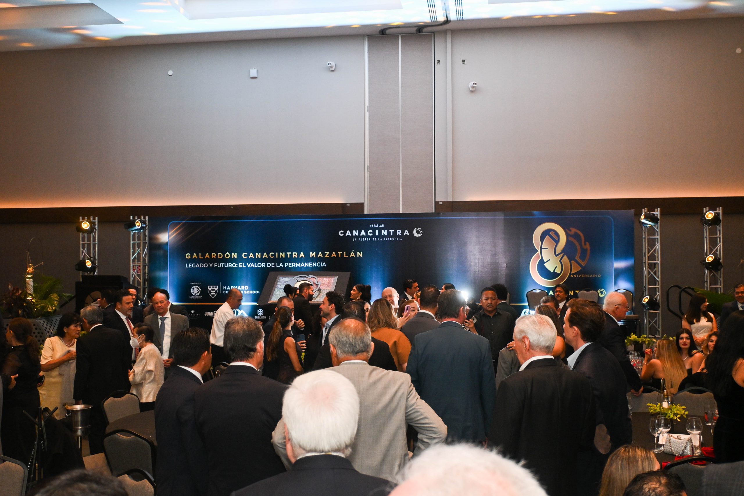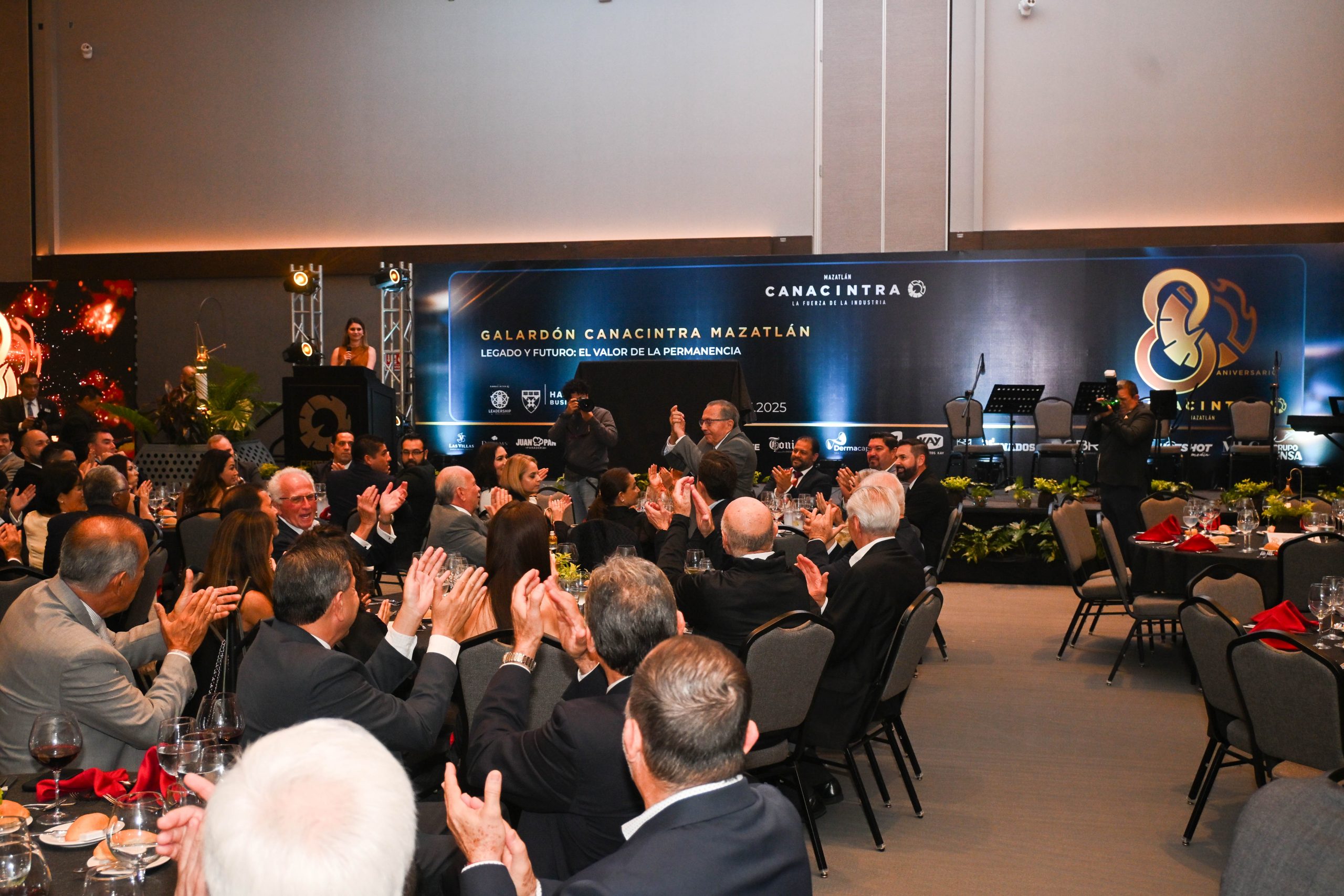 El presidente de Canacintra Mazatlán, Mtro. Sergio Rojas Velarde, celebró junto a empresarios y dirigentes camarales las ocho décadas de historia de la cámara, recordando la evolución del puerto desde sus orígenes pesqueros hasta su actual etapa de modernización logística e industrial. Subrayó que Grupo Pinsa ha sido pieza fundamental en esta transformación.