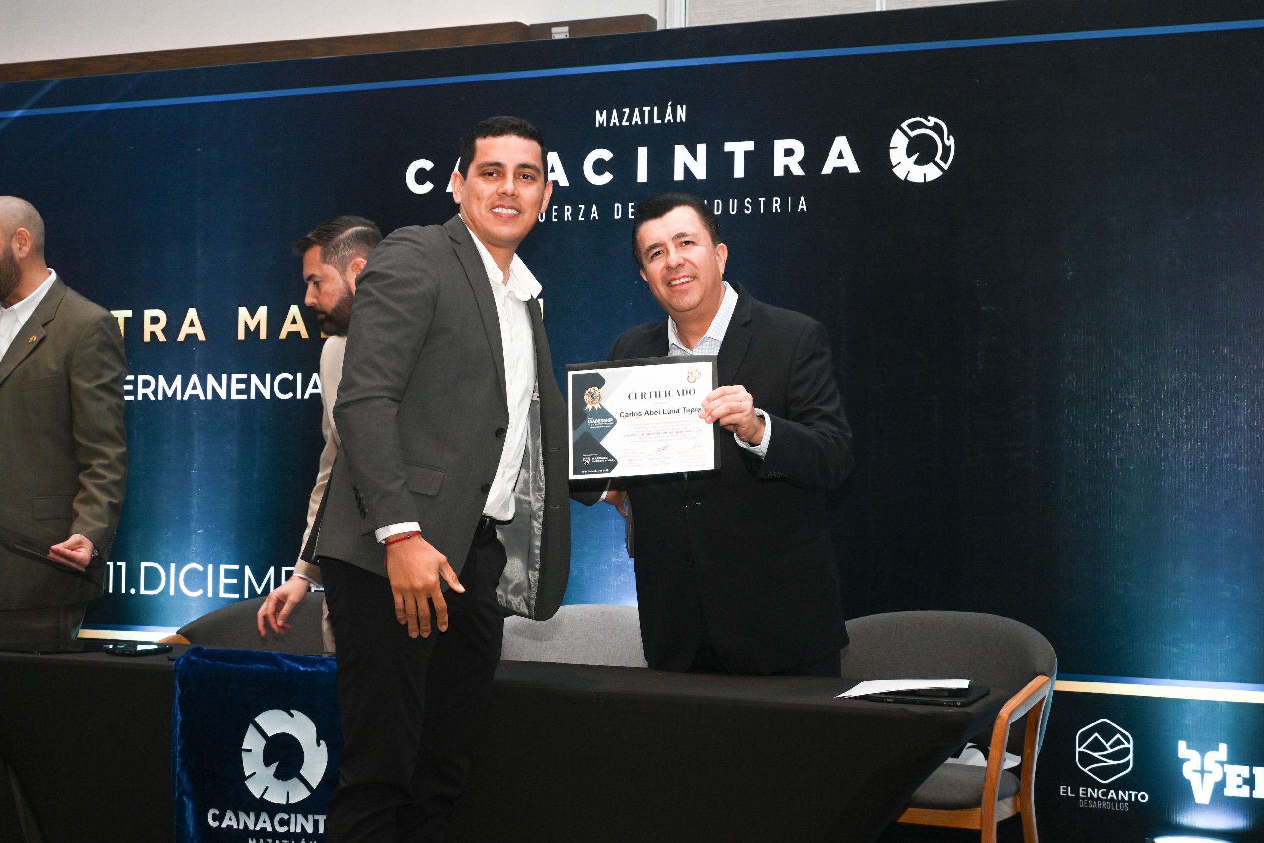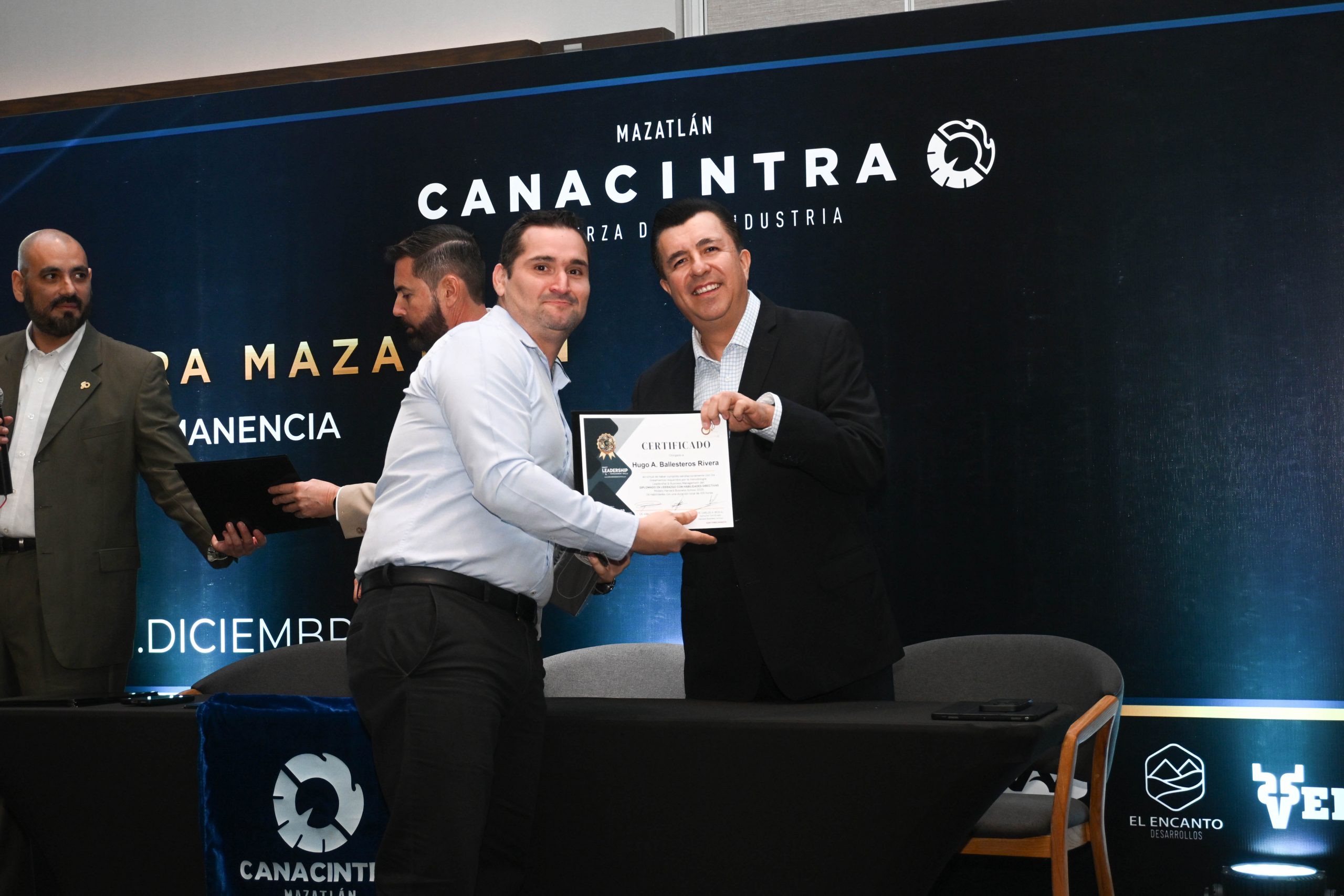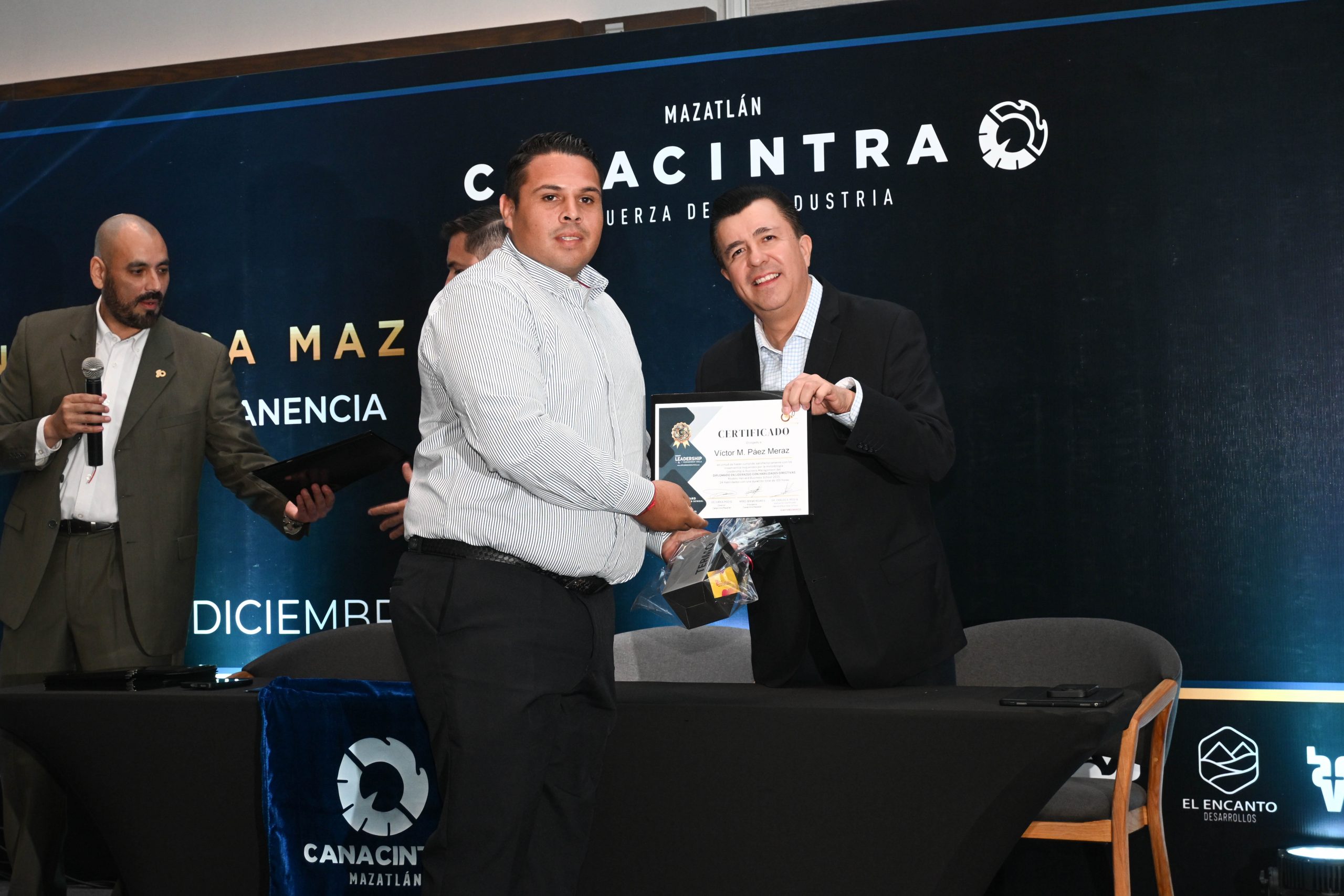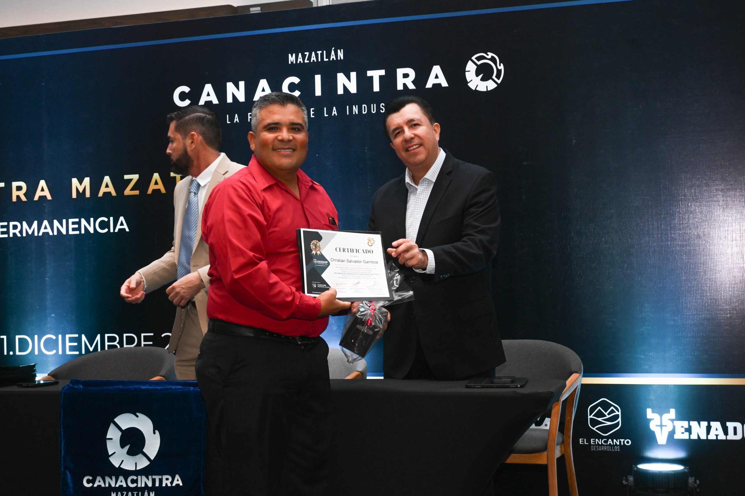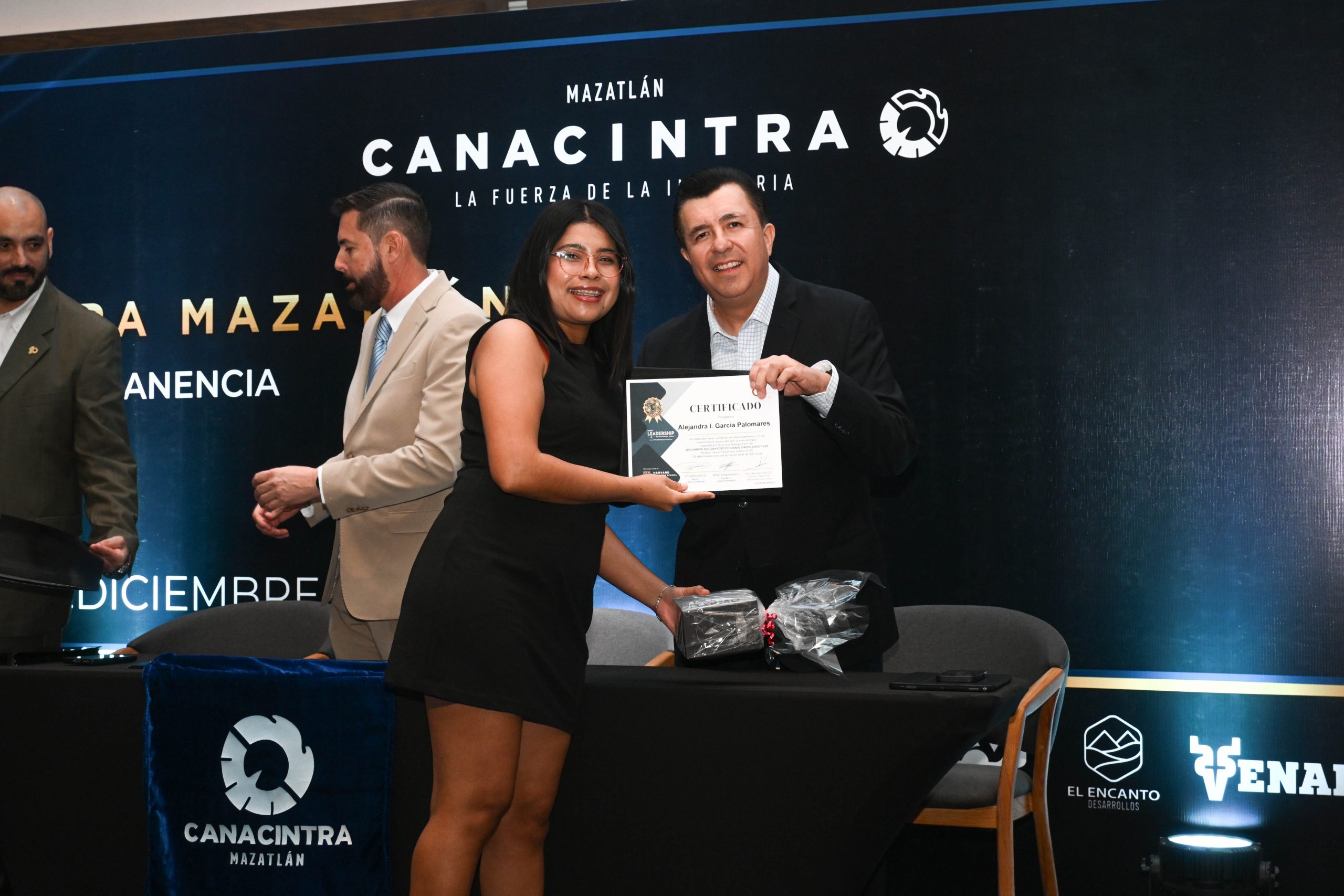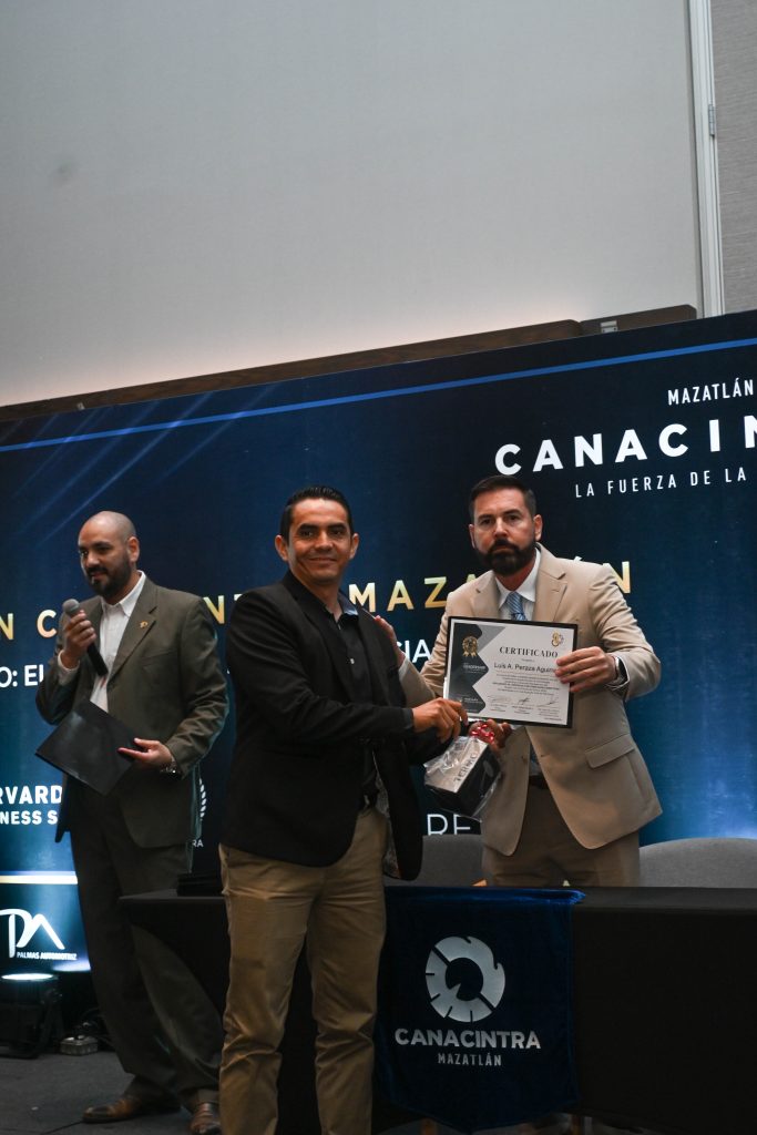 El pasado 11 de diciembre, en el Hotel Dreams Estrella de Mar, se realizó la ceremonia de entrega de certificados, contando con la presencia del Mtro. Sergio Rojas Velarde, Presidente de Canacintra Mazatlán; el Lic. Iván Pico Gutiérrez, director general de Canacintra Mazatlán; y el Dr. Carlos Ríos Galván, quienes dirigieron mensajes de reconocimiento y entregaron los certificados a los nuevos líderes.