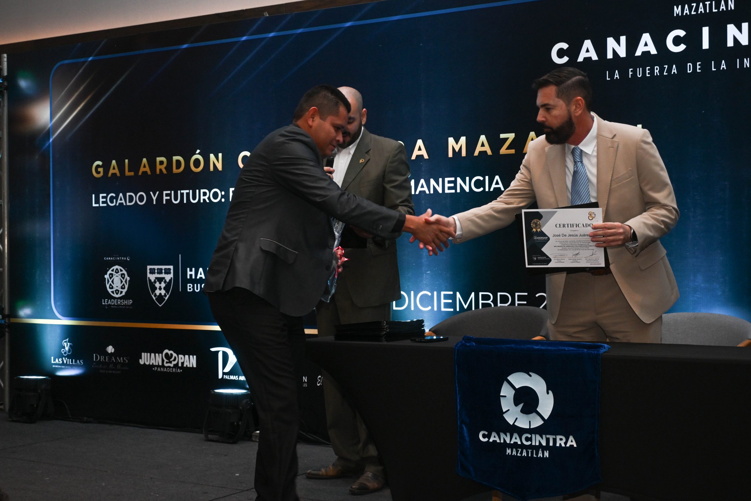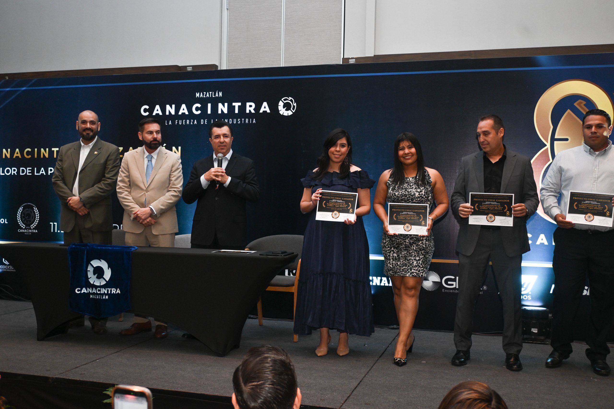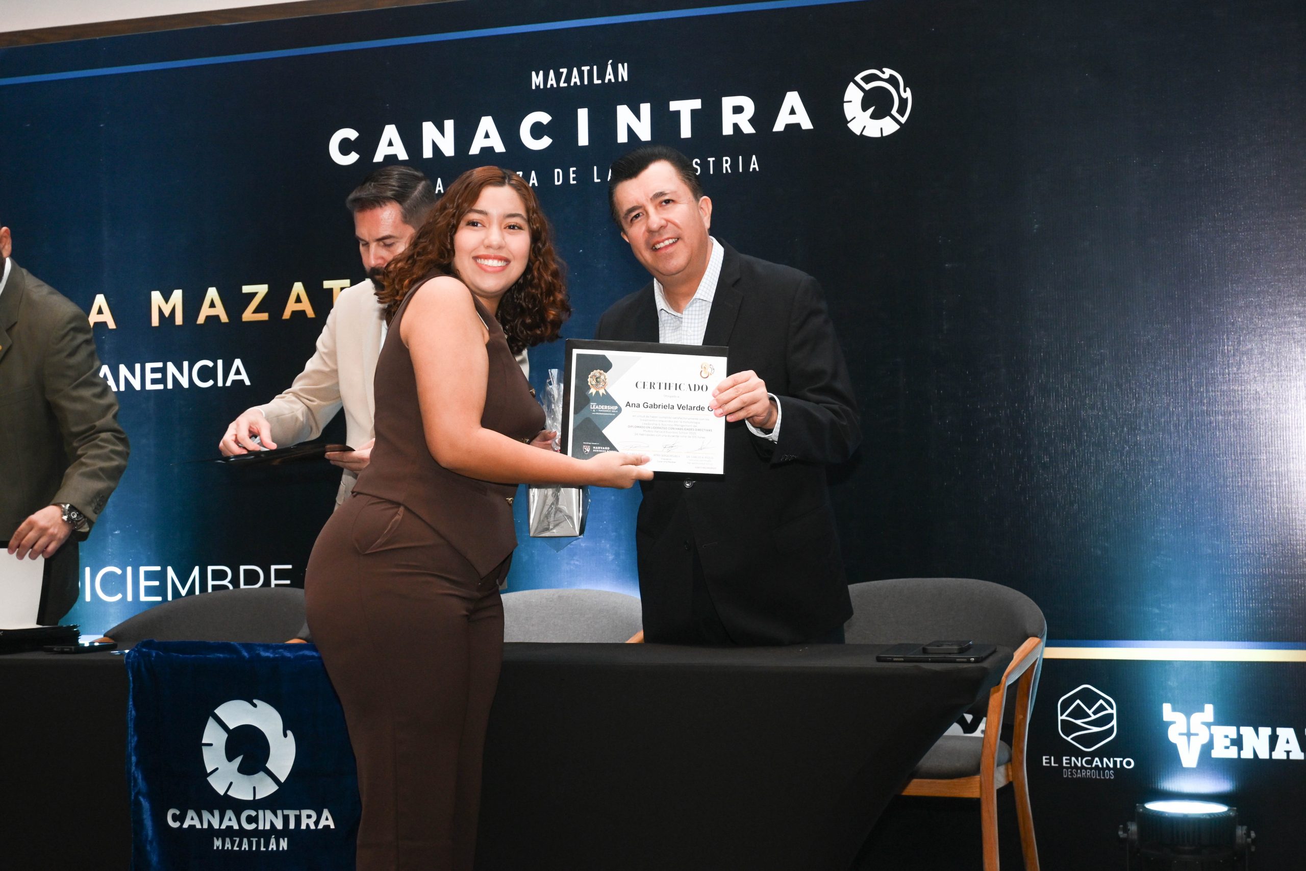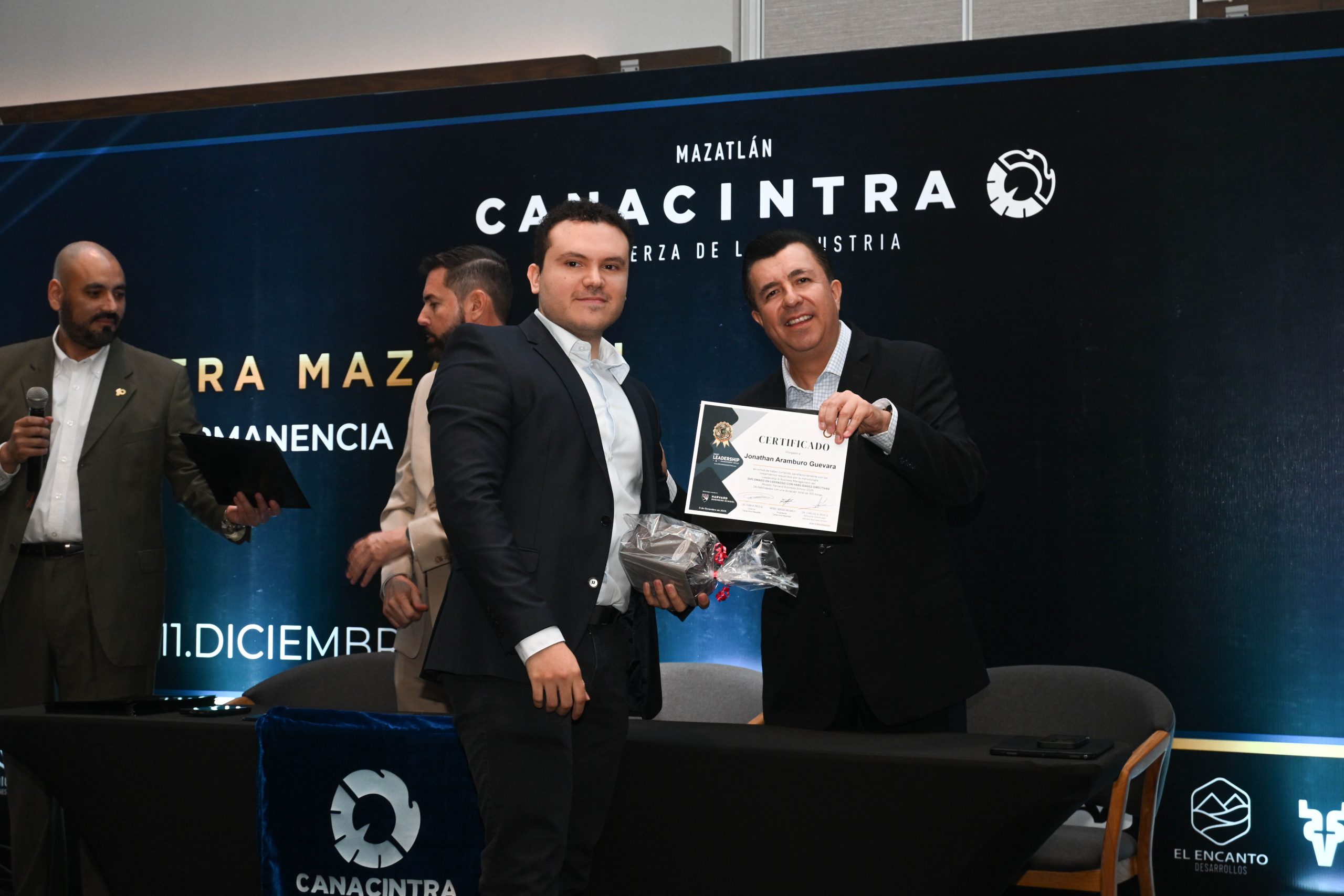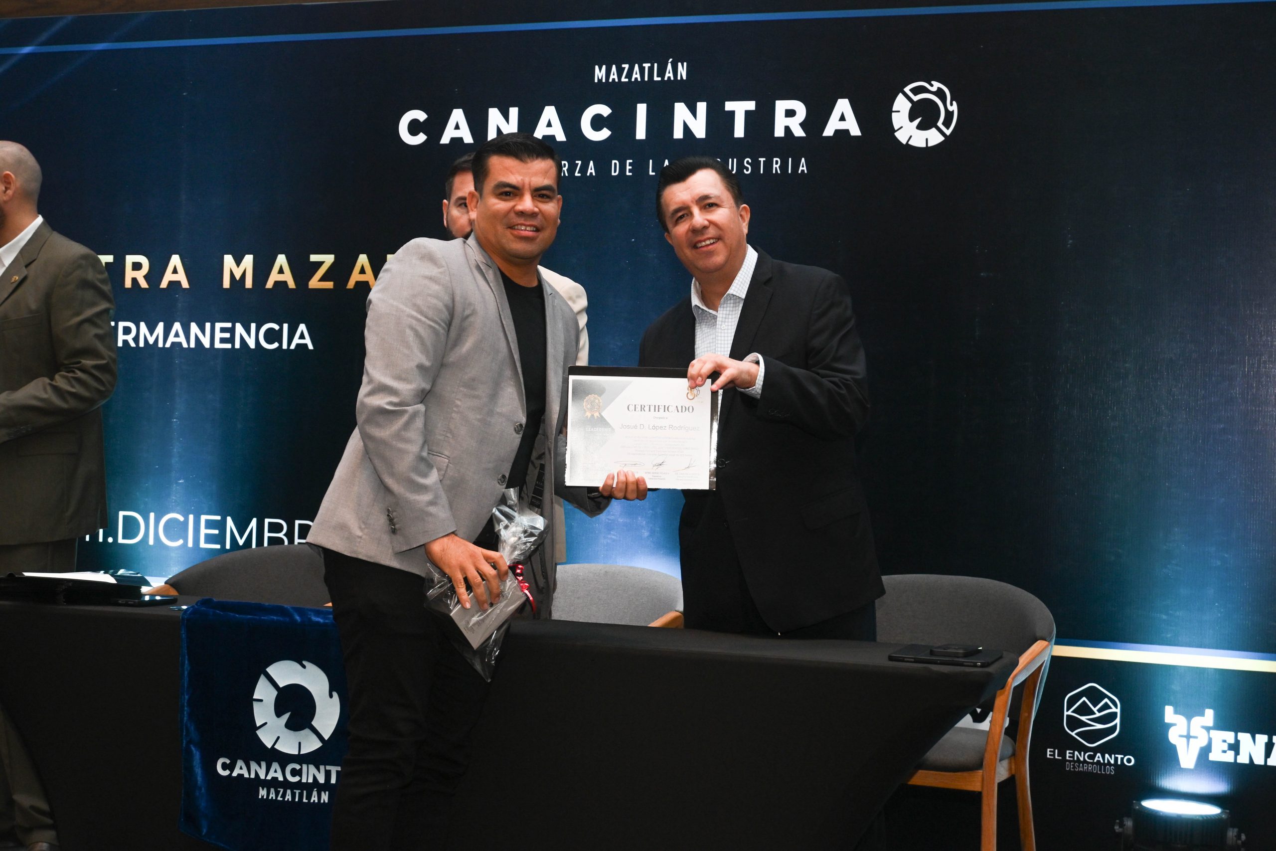 El pasado 11 de diciembre, en el Hotel Dreams Estrella de Mar, se realizó la ceremonia de entrega de certificados, contando con la presencia del Mtro. Sergio Rojas Velarde, Presidente de Canacintra Mazatlán; el Lic. Iván Pico Gutiérrez, director general de Canacintra Mazatlán; y el Dr. Carlos Ríos Galván, quienes dirigieron mensajes de reconocimiento y entregaron los certificados a los nuevos líderes.