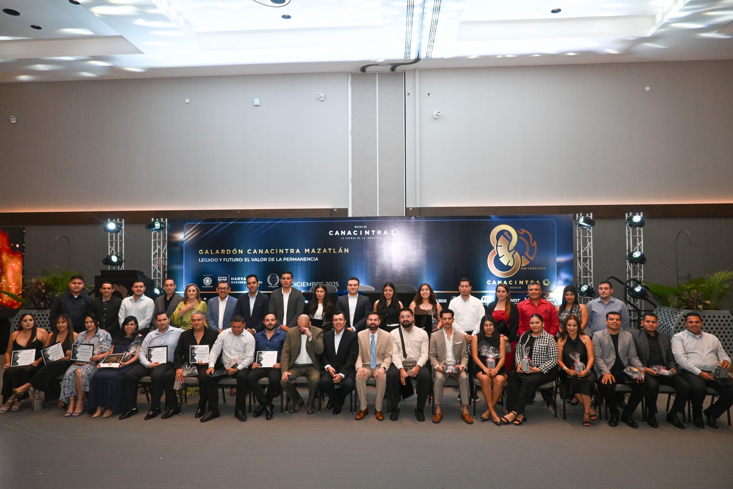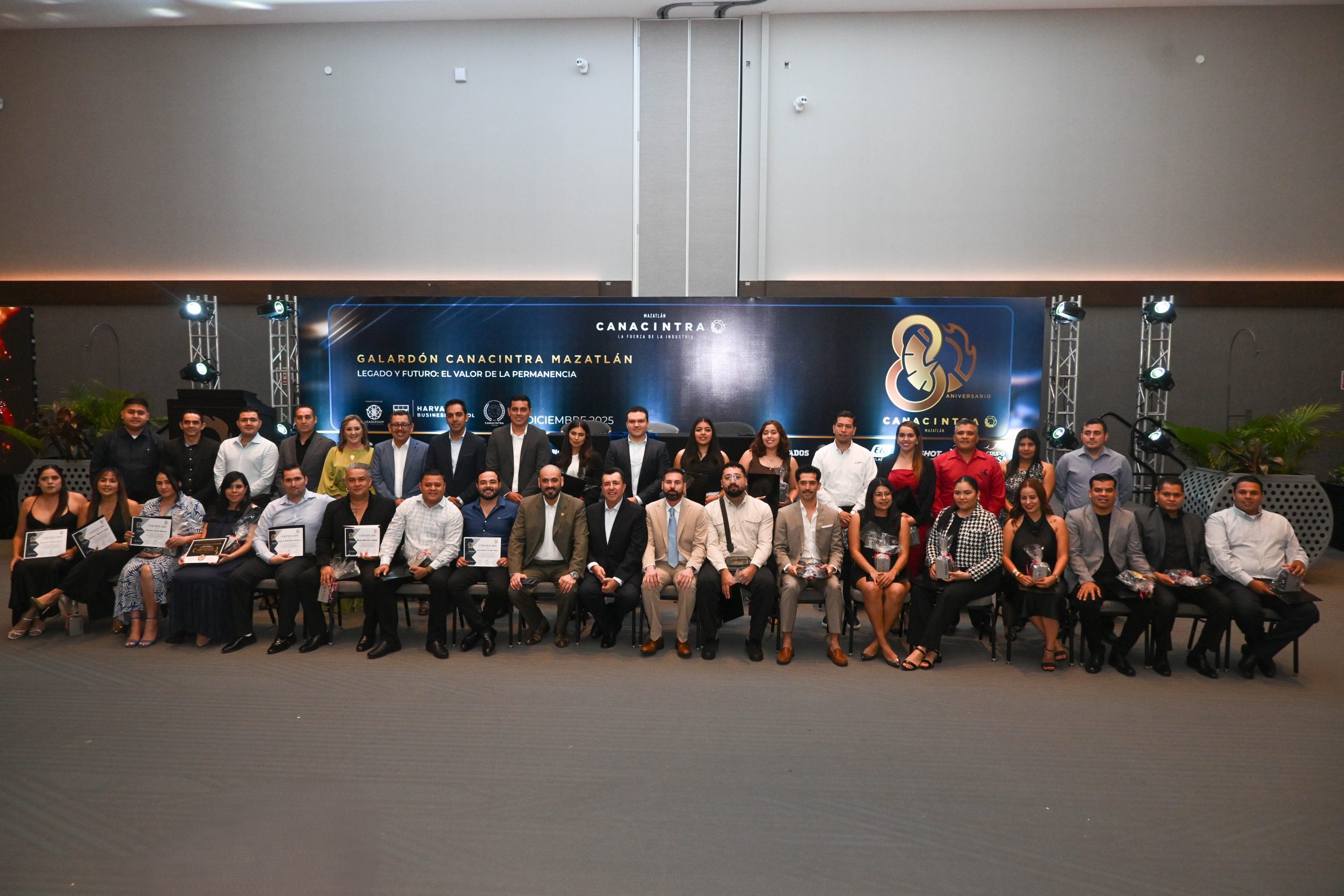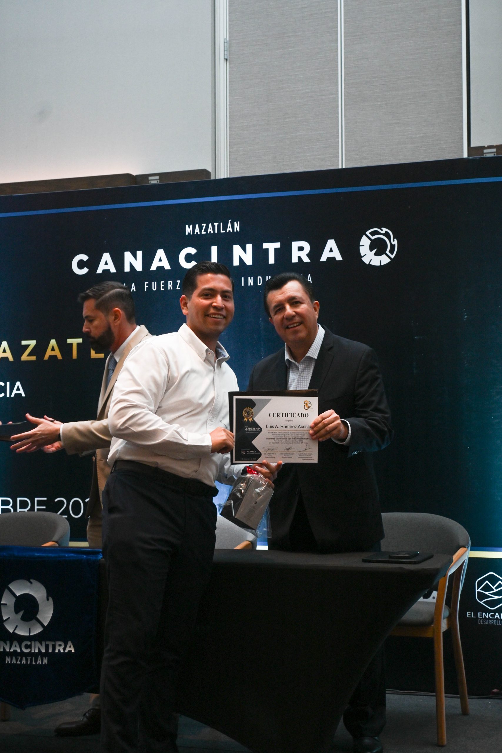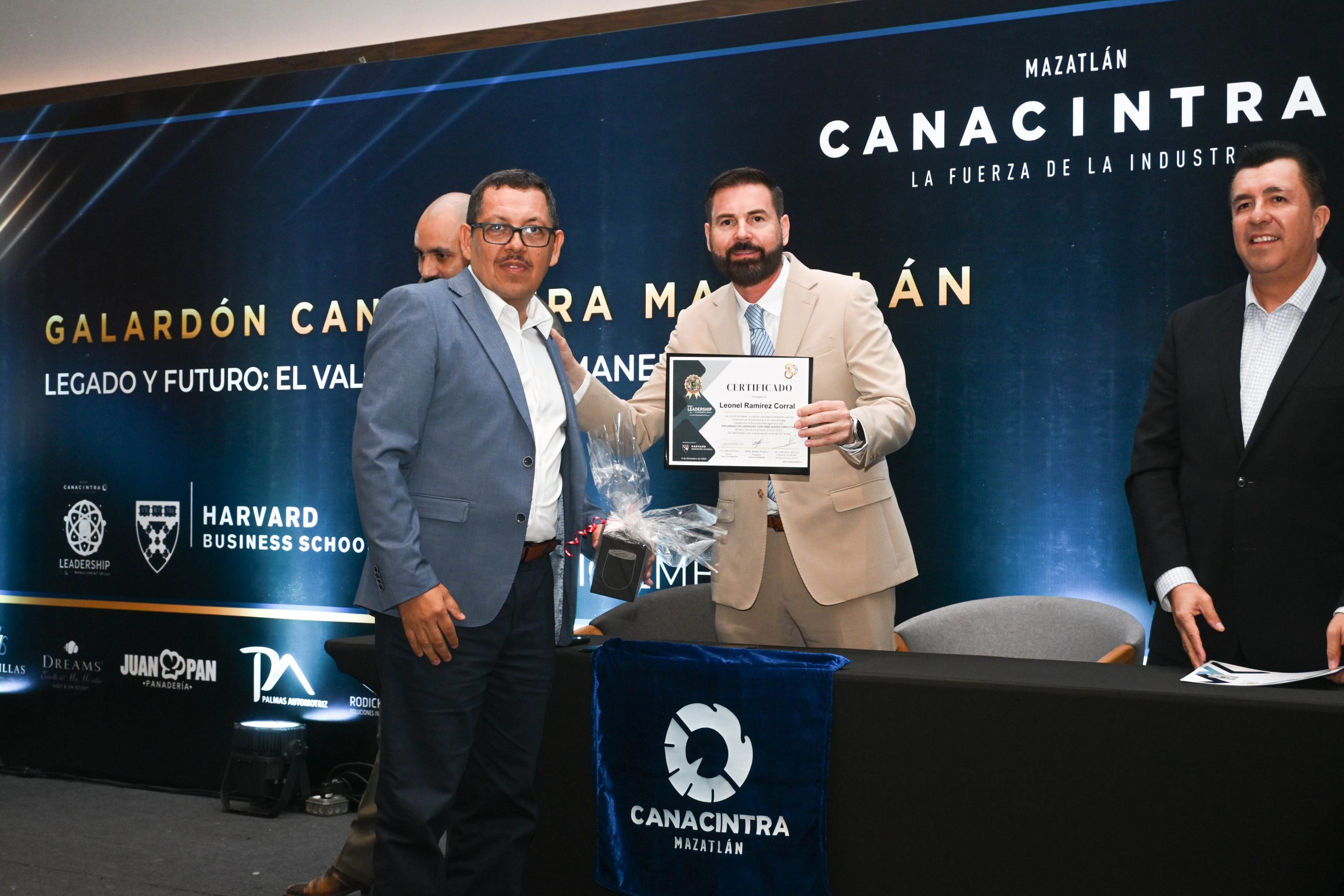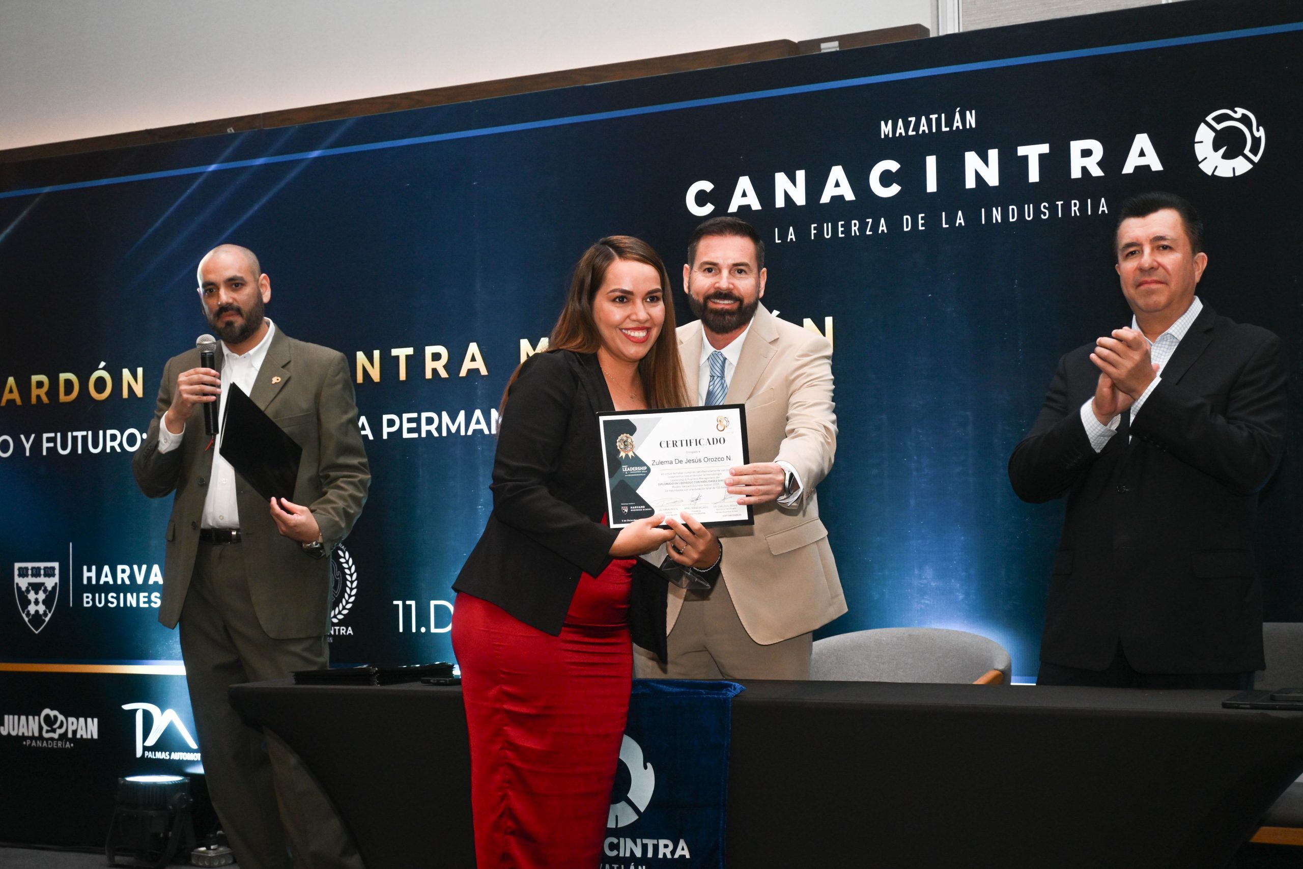 El pasado 11 de diciembre, en el Hotel Dreams Estrella de Mar, se realizó la ceremonia de entrega de certificados, contando con la presencia del Mtro. Sergio Rojas Velarde, Presidente de Canacintra Mazatlán; el Lic. Iván Pico Gutiérrez, director general de Canacintra Mazatlán; y el Dr. Carlos Ríos Galván, quienes dirigieron mensajes de reconocimiento y entregaron los certificados a los nuevos líderes.