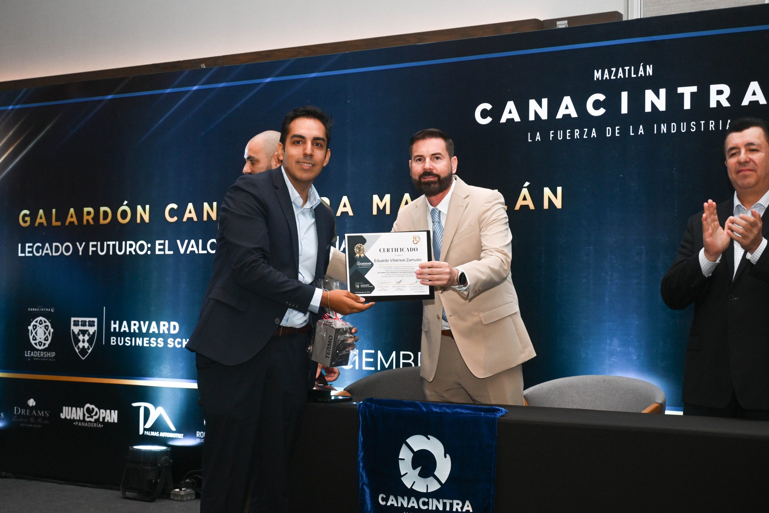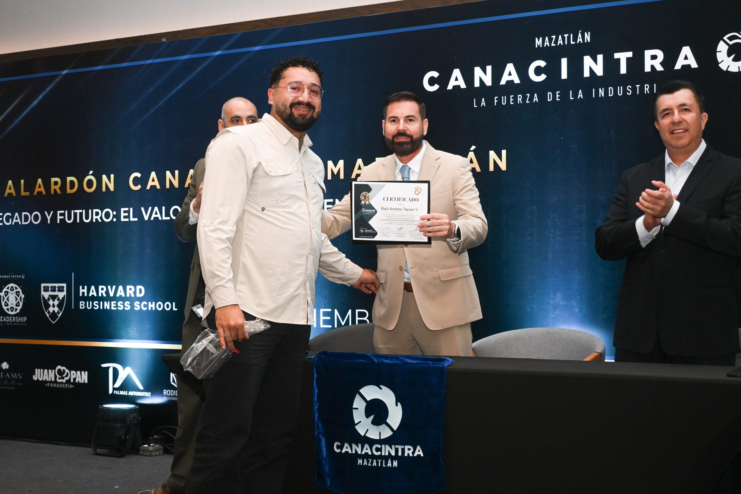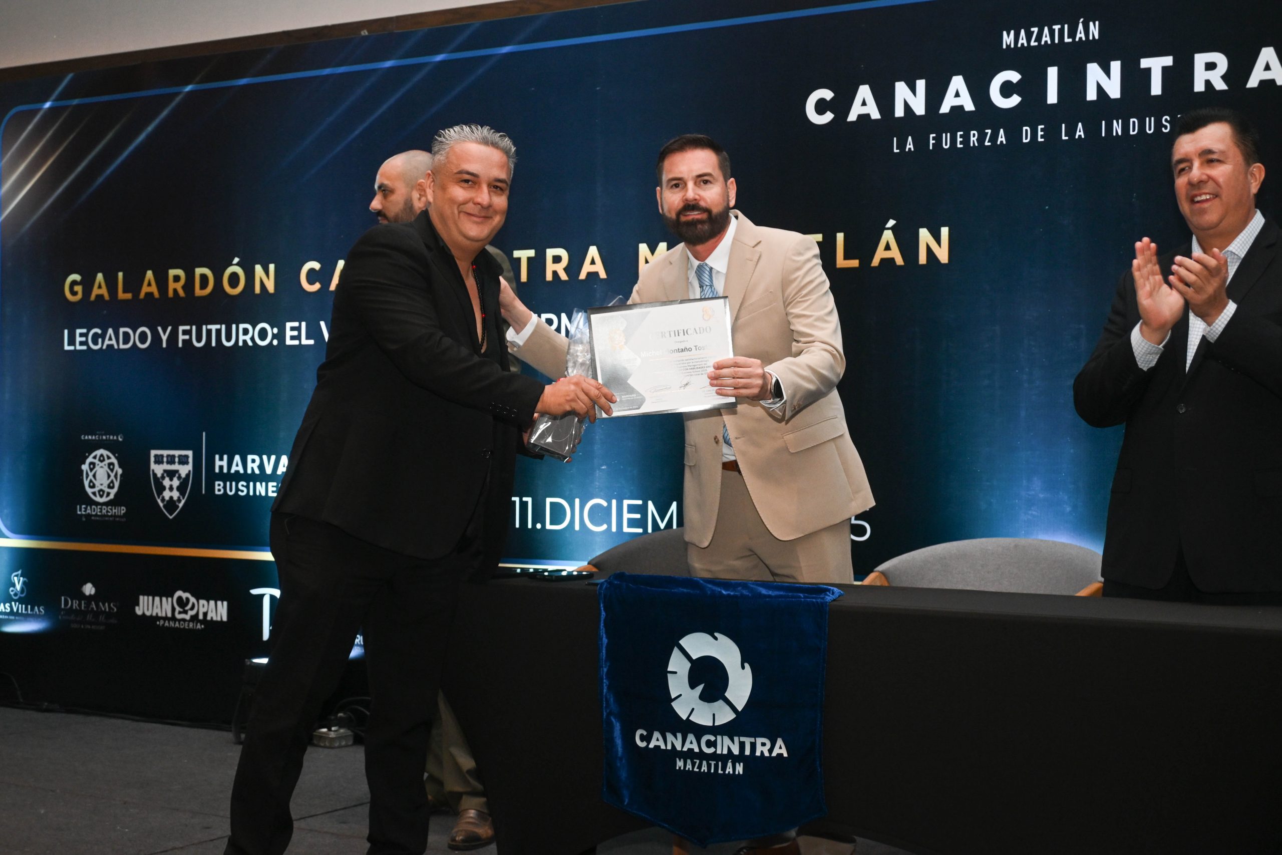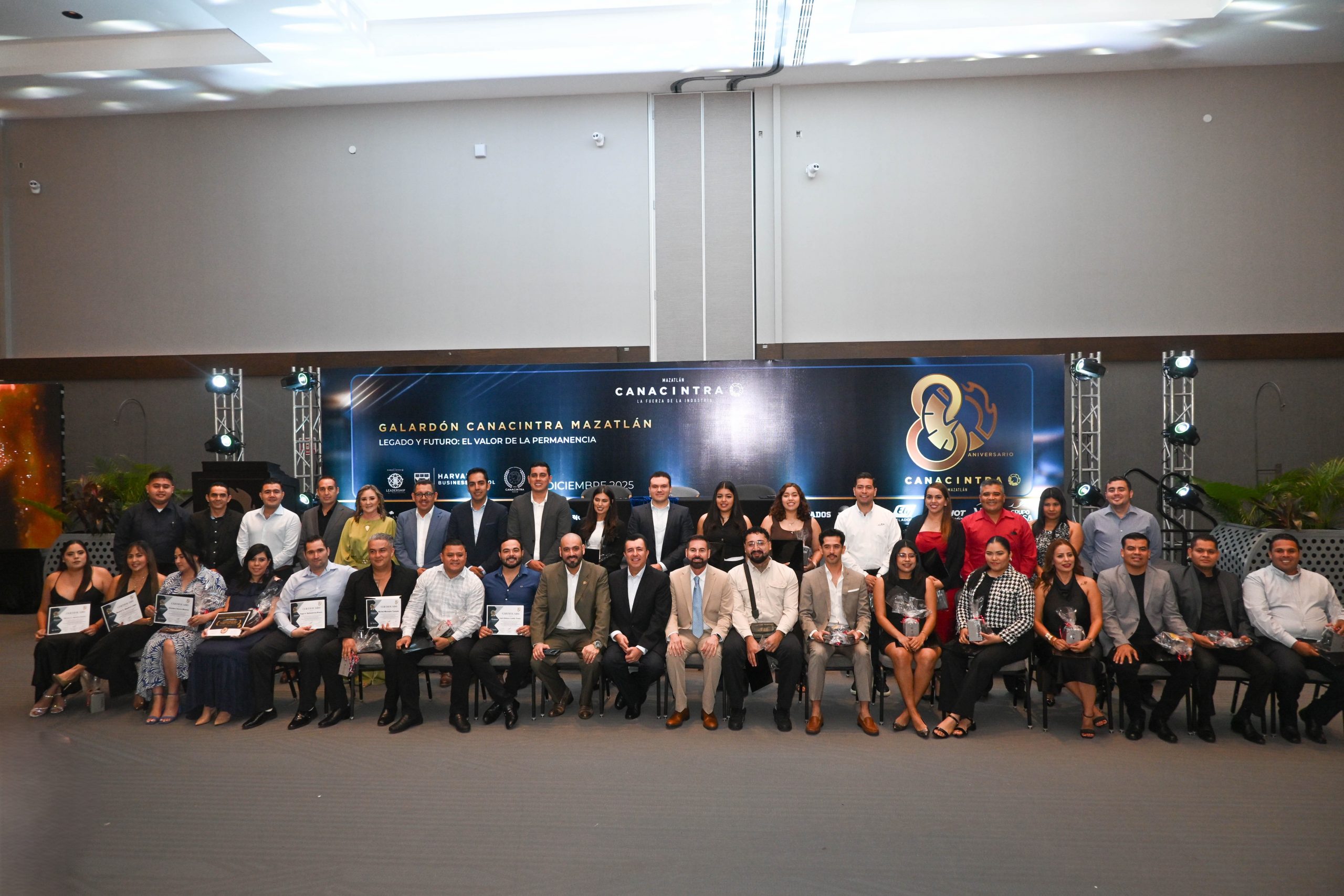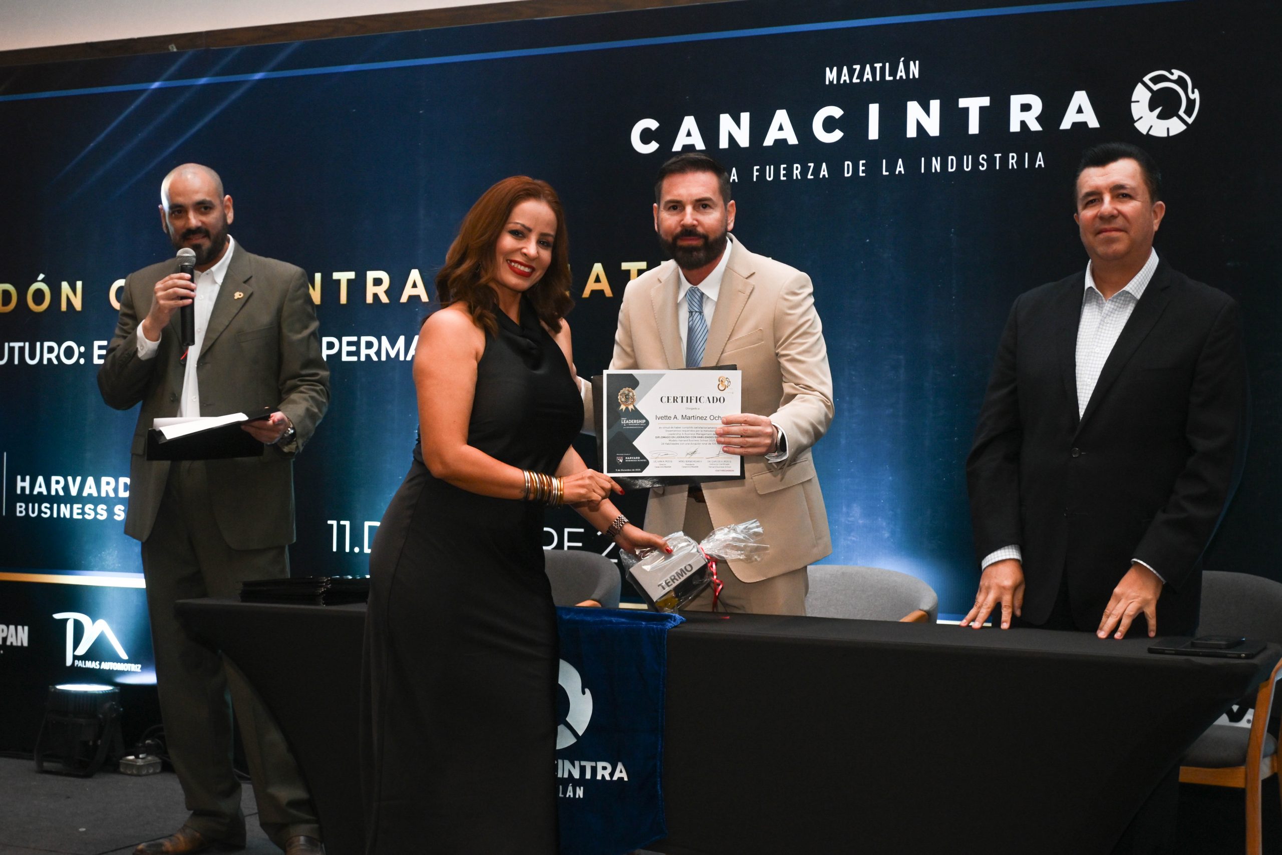 El pasado 11 de diciembre, en el Hotel Dreams Estrella de Mar, se realizó la ceremonia de entrega de certificados, contando con la presencia del Mtro. Sergio Rojas Velarde, Presidente de Canacintra Mazatlán; el Lic. Iván Pico Gutiérrez, director general de Canacintra Mazatlán; y el Dr. Carlos Ríos Galván, quienes dirigieron mensajes de reconocimiento y entregaron los certificados a los nuevos líderes.