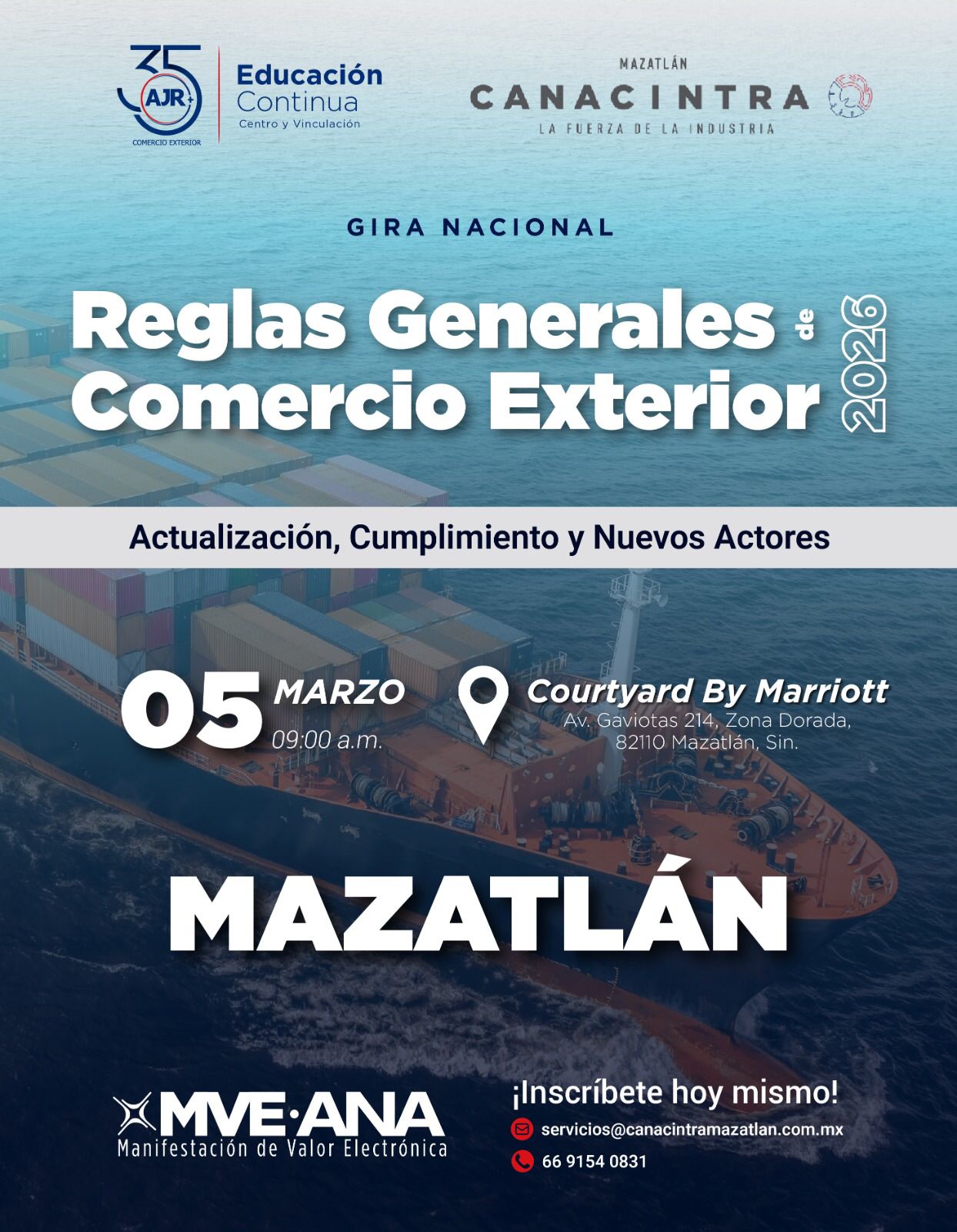 📍 Sede: Courtyard By Marriott, Av. Gaviotas 214, Zona Dorada, Mazatlán, Sin.