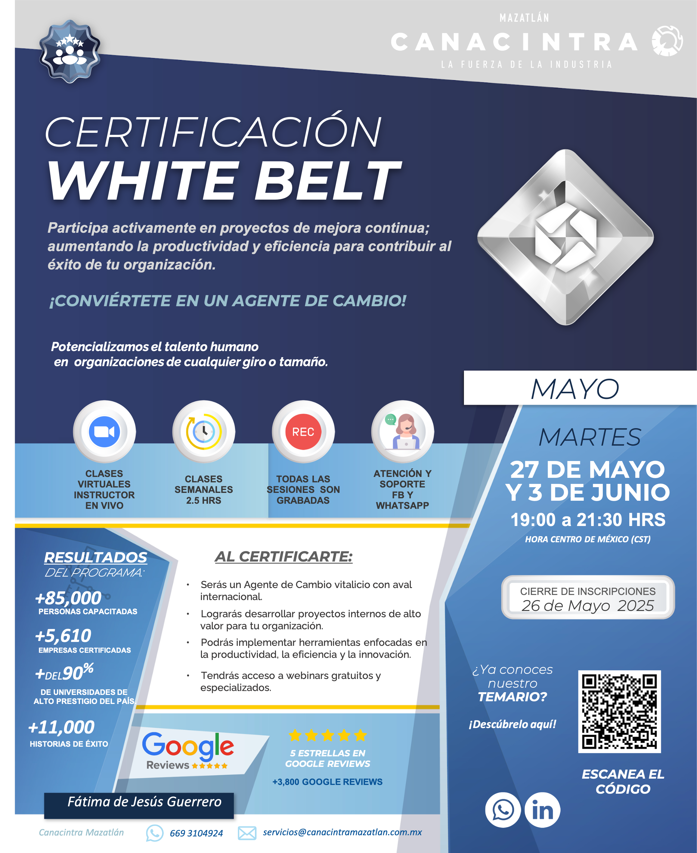 La Mejora Continua no es sólo una metodología, sino una ventaja competitiva 🔝 La Cámara Nacional de la Industria de la Transformación Mazatlán, en alianza con International Lean Six Sigma, te invitamos a certificarte en el primer nivel de Mejora Continua White Belt 💯 En esta certificación de 5 horas, aprenderás a mejorar tus procesos […]